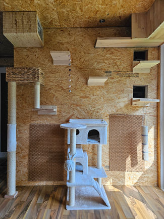 Hier auf dieser Seite finden Sie ein paar Eindrücke unserer neu erbauten Pension. Mit viel Liebe zum Detail eingerichtet und abgestimmt auf die Bedürfnisse der Katzen finden sich viele Spiel/Kletter- und Versteckmöglichkeiten im Inneren des Hauses. Gemütliche Schlafplätze bieten Rückzug und Ruhe an.
